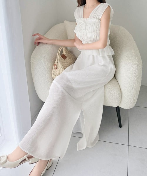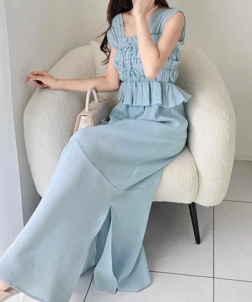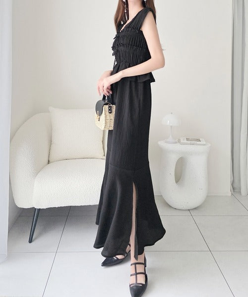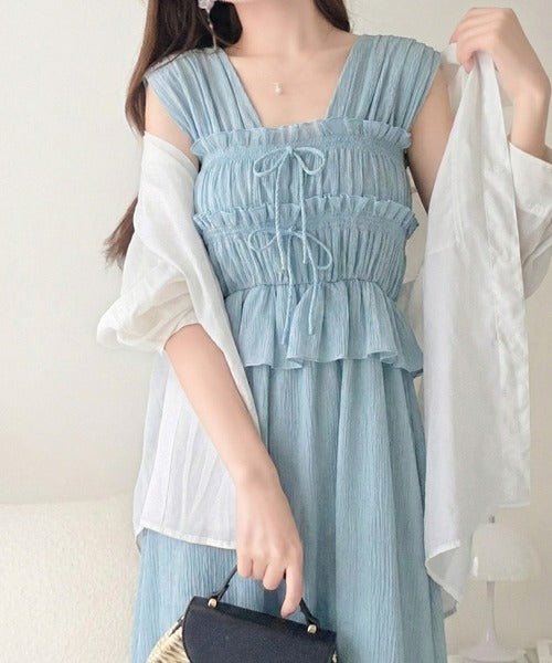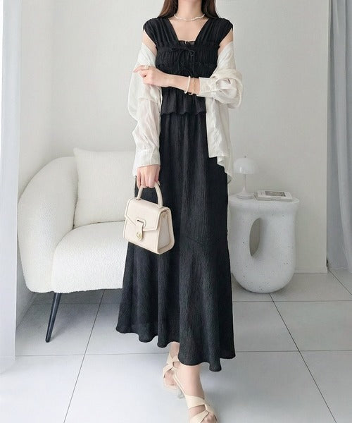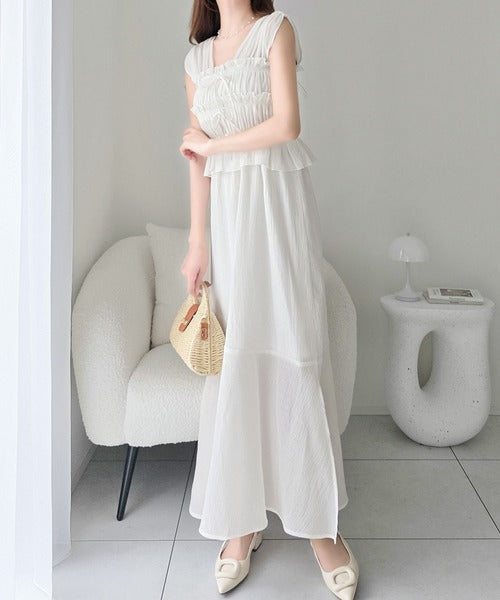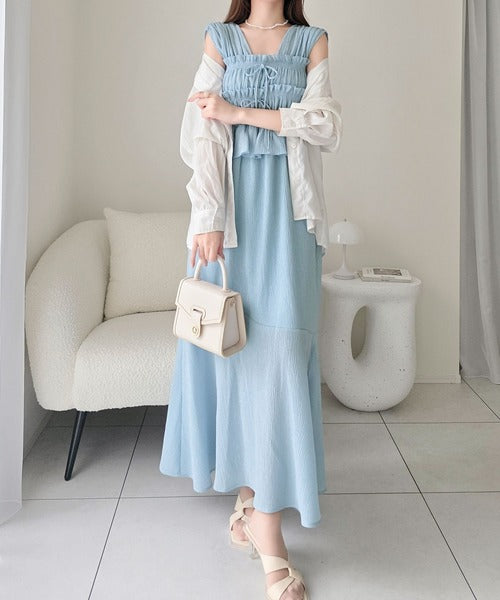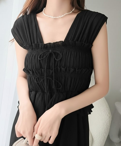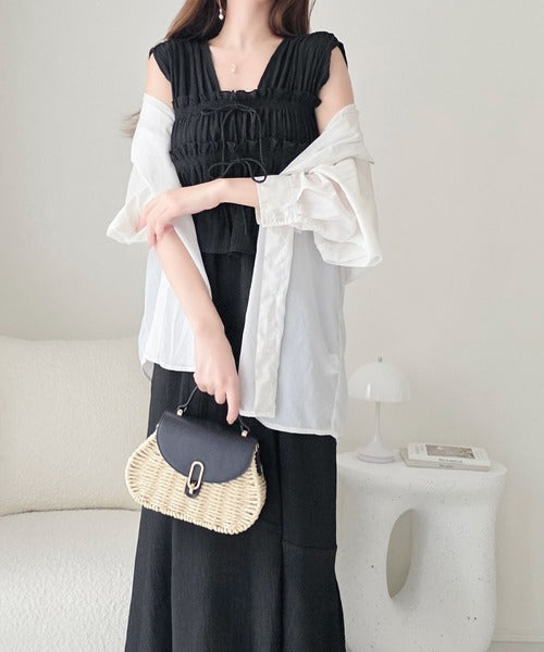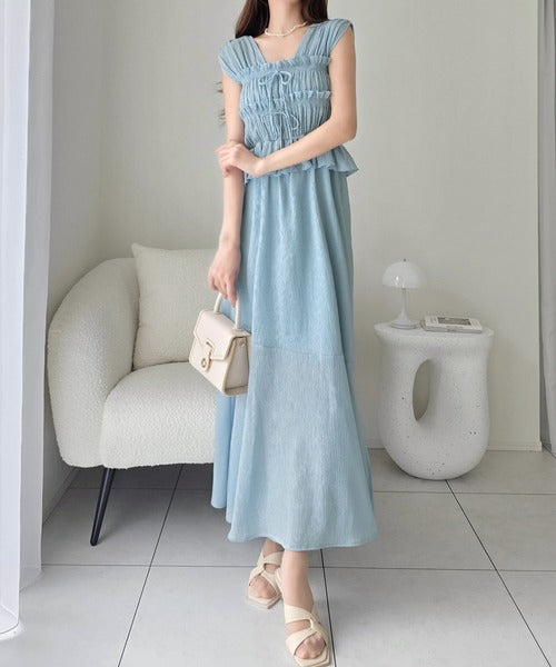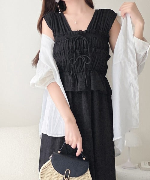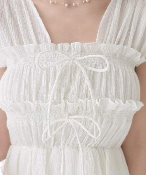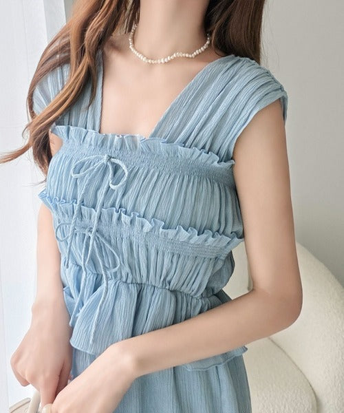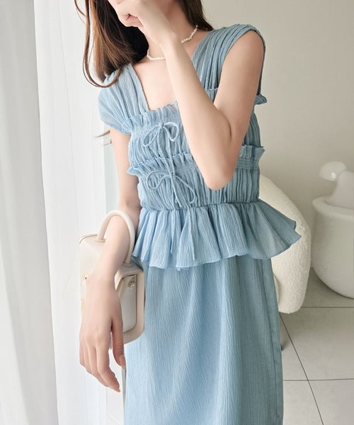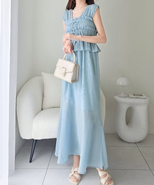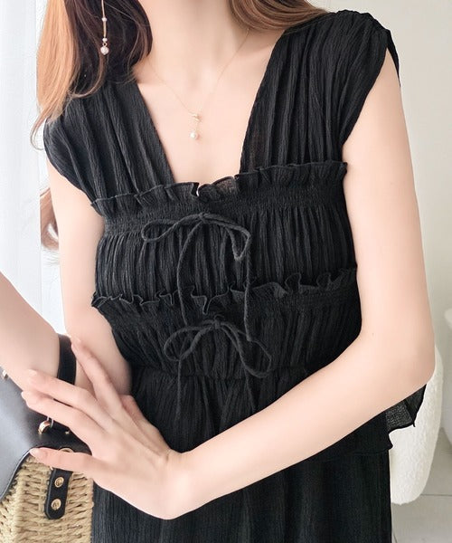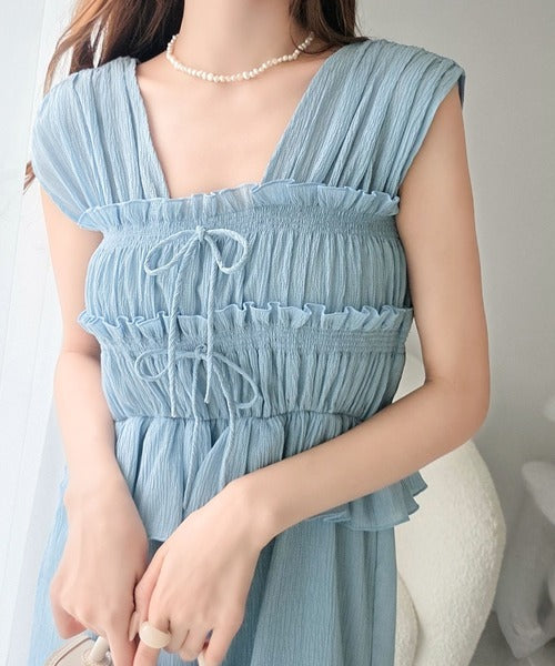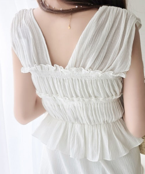 繊細なシャーリングとフリルが目を惹く一枚。