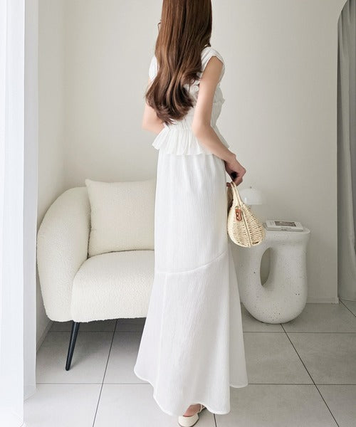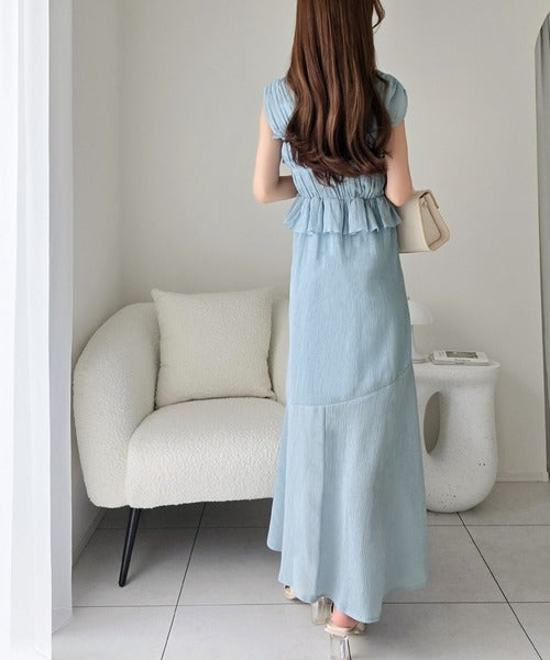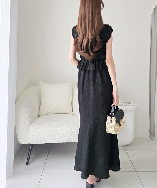 ペプラム風フリルがフェミニンなワンピース。