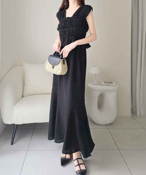 【mily bilet】一枚で主役級!大人フェミニンなシャーリングフリルティアードワンピース mi1019135