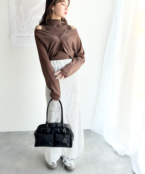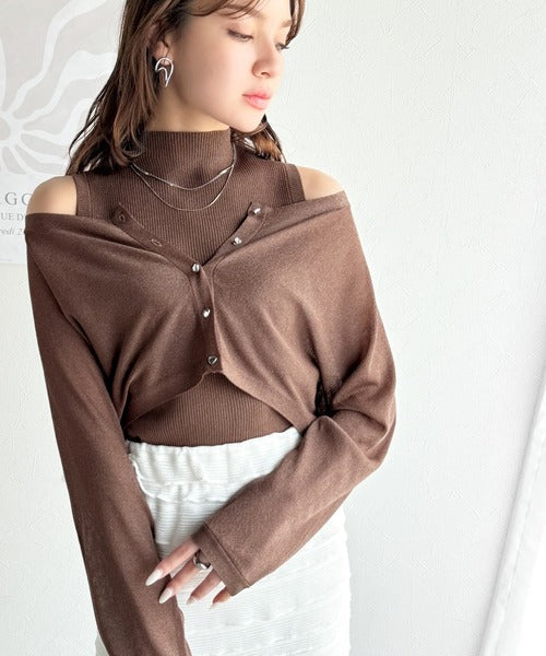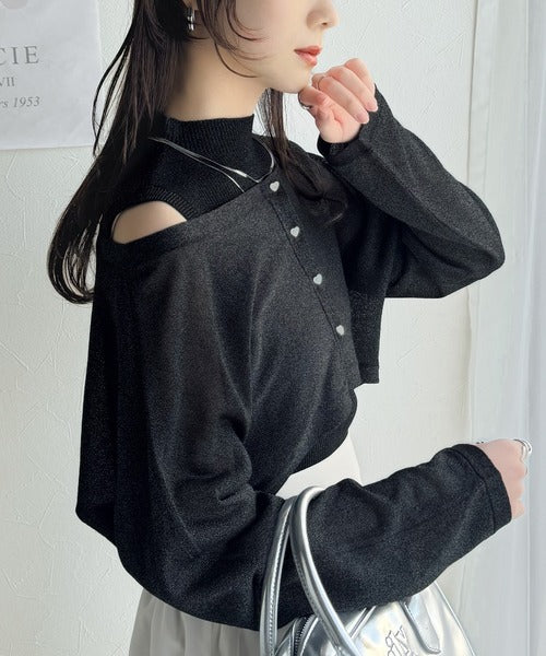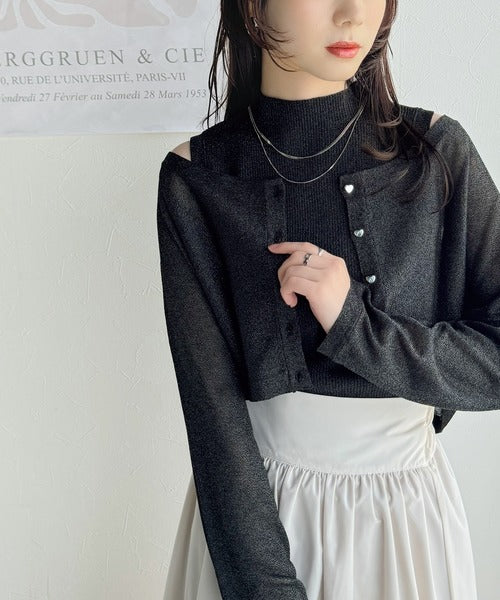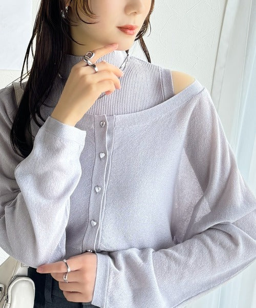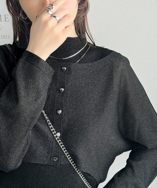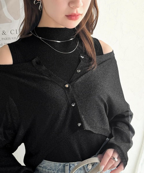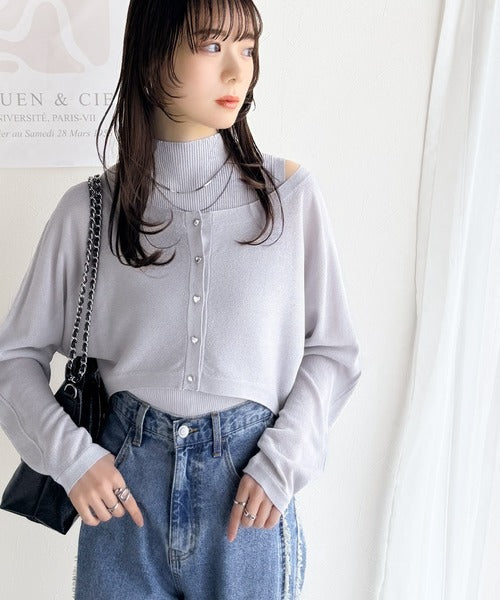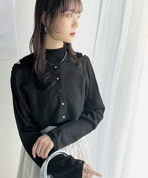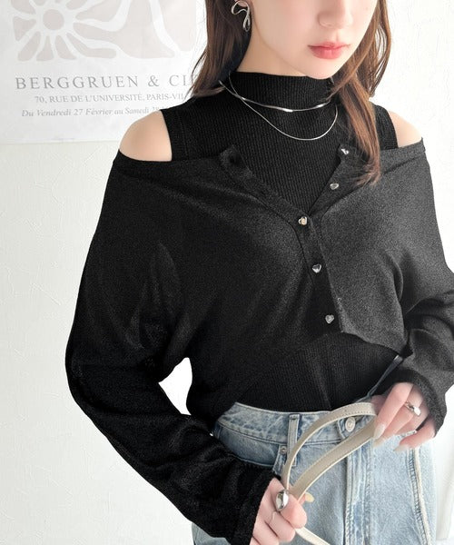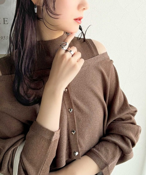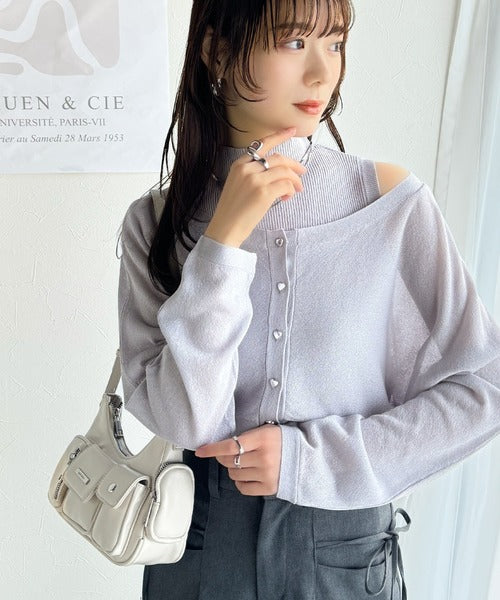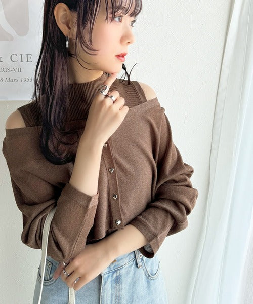 【mily bilet】上品さと可愛らしさを兼ね備えた、オフショル2WAYラメシアーニットアンサンブル(カーディガンセット) mi1029105