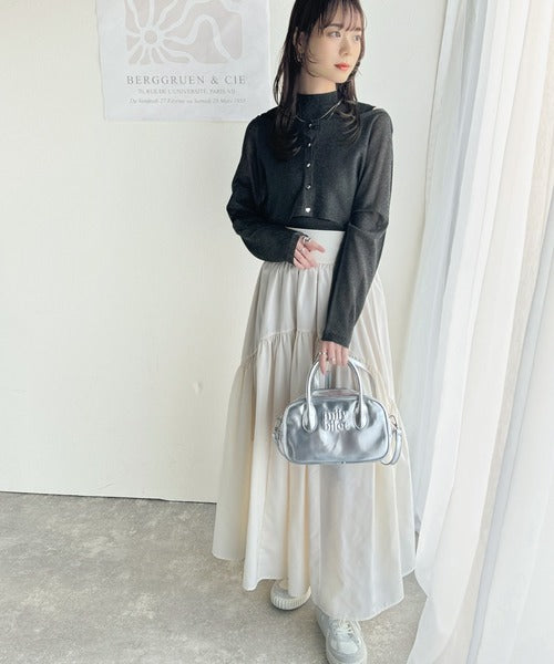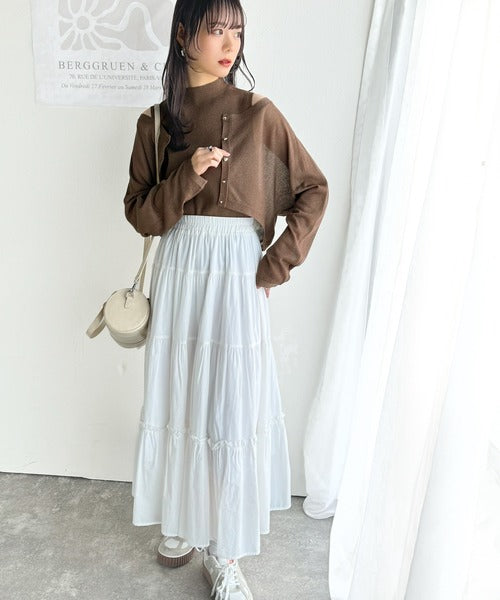 同系色のロングスカートと合わせればセットアップドレス風に仕上がり