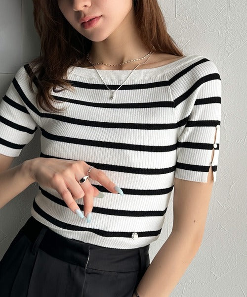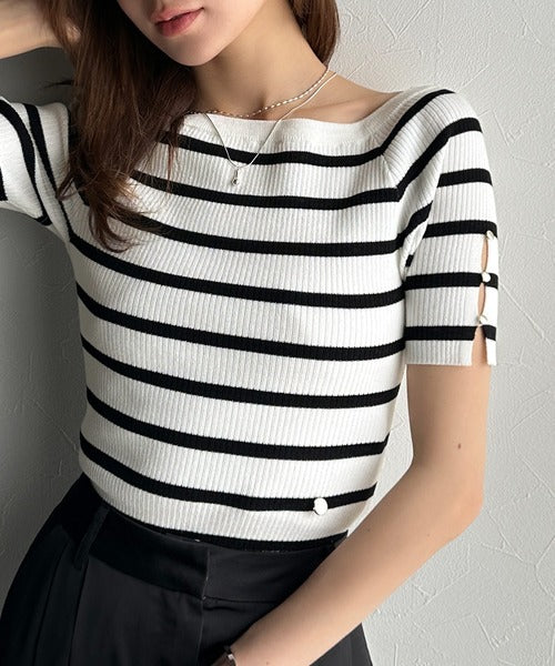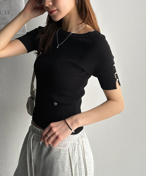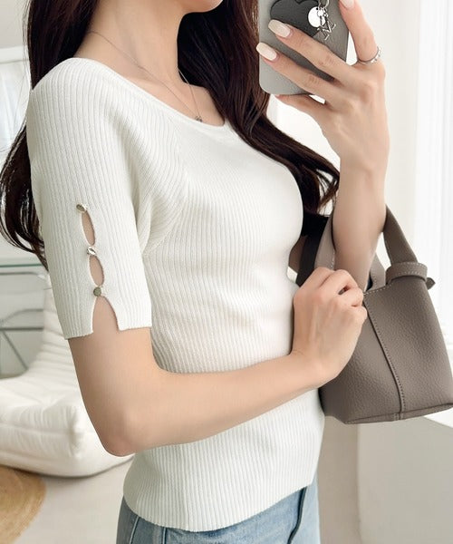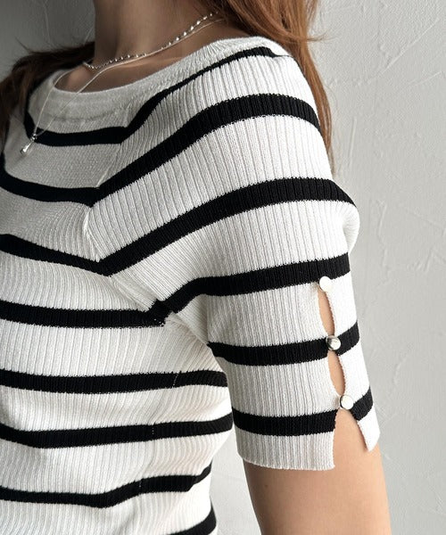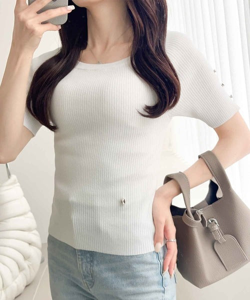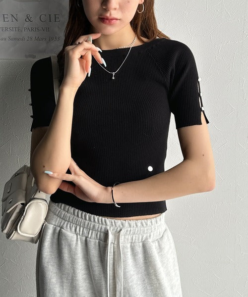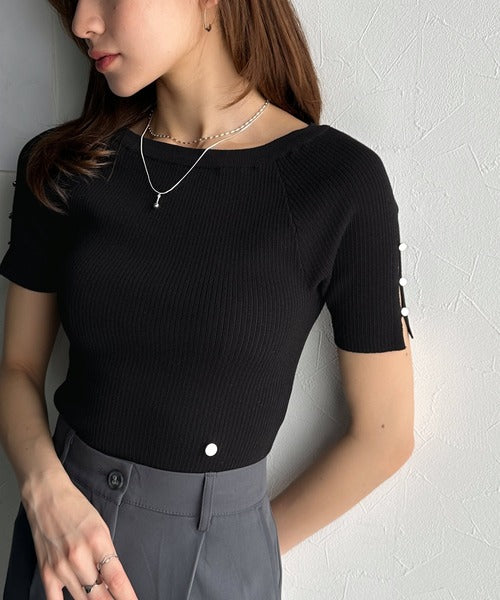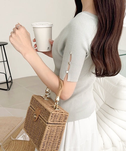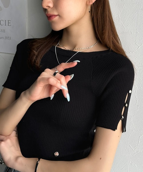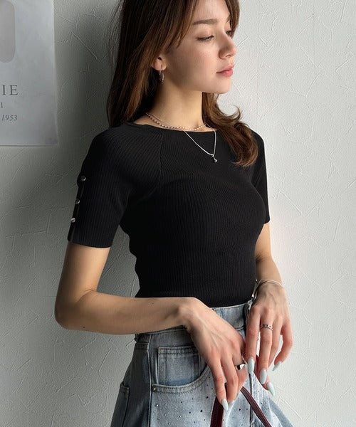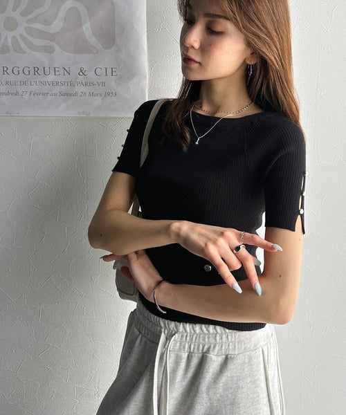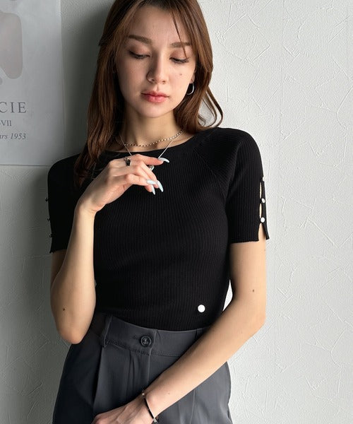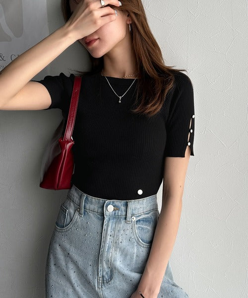 【mily bilet】大人可愛い抜け感!袖開きボタンサマーニット(半袖) mi1029117
