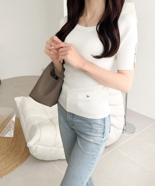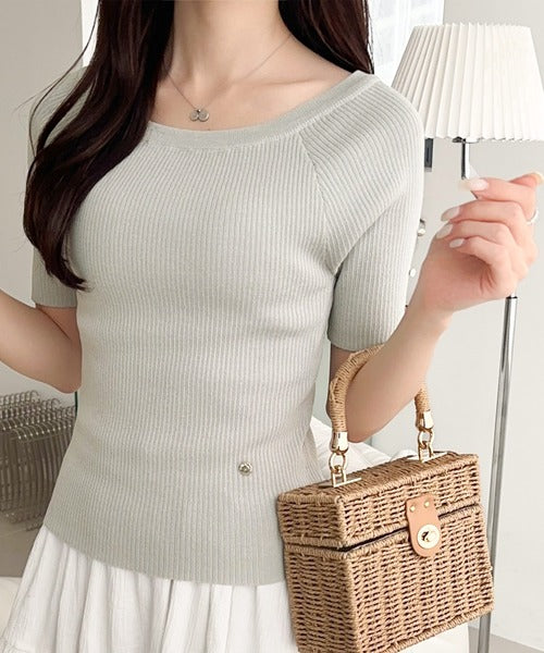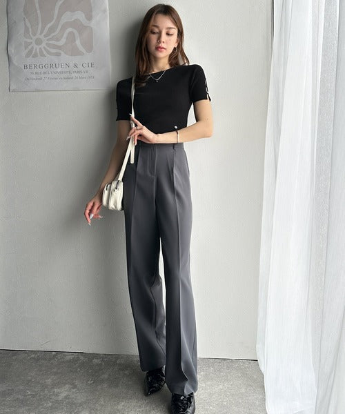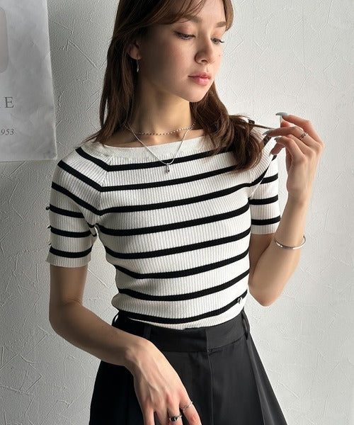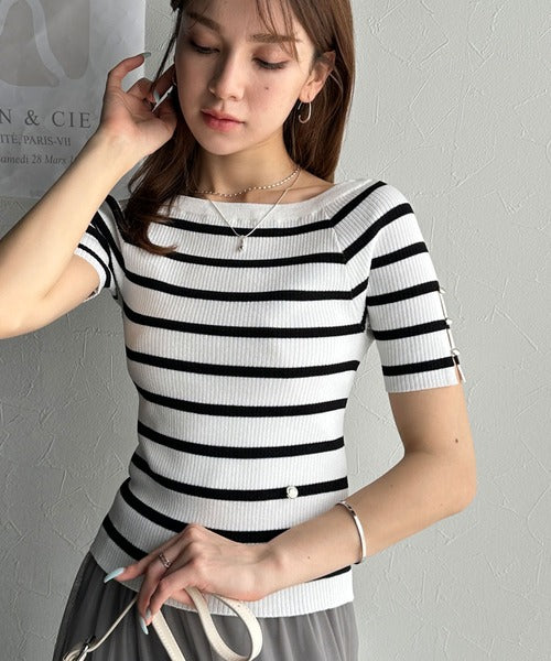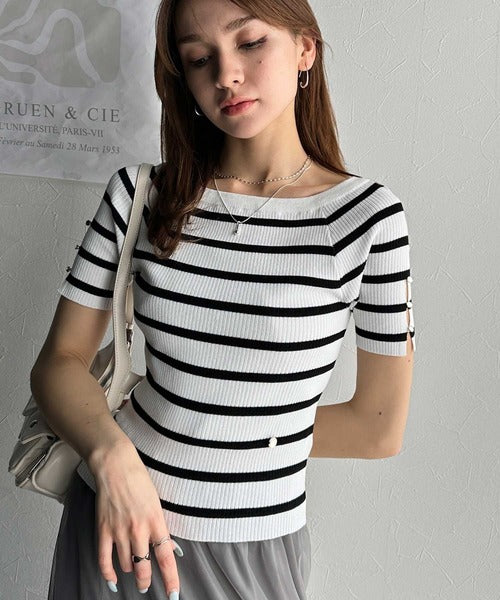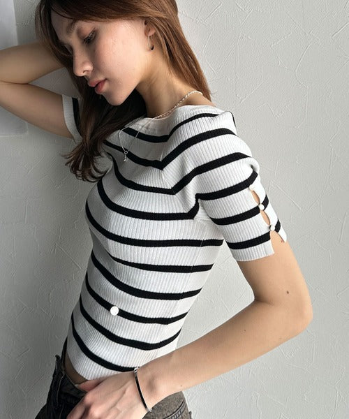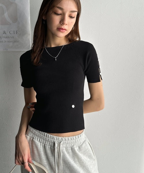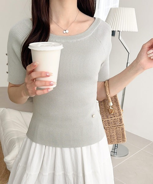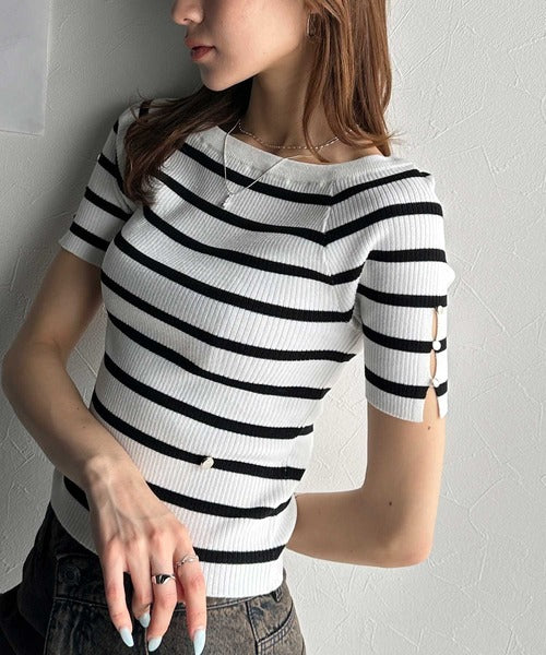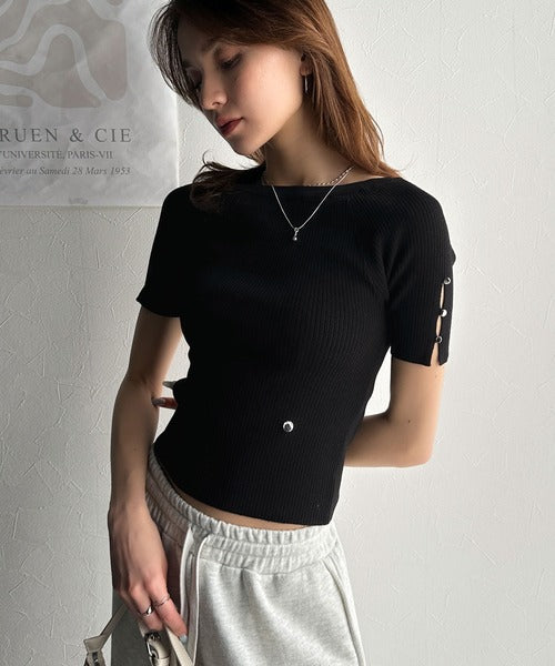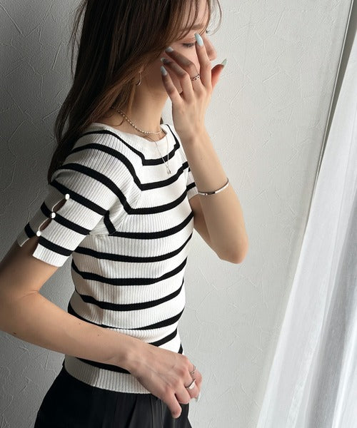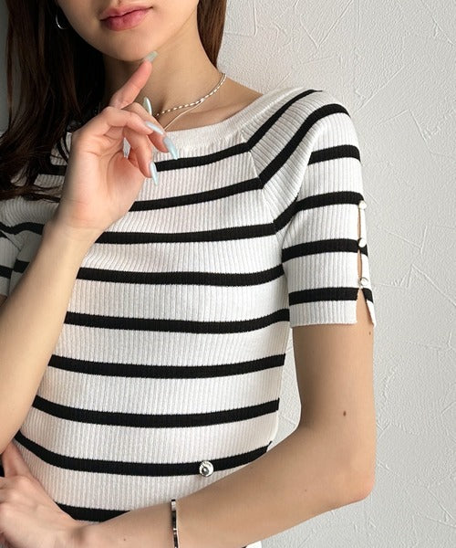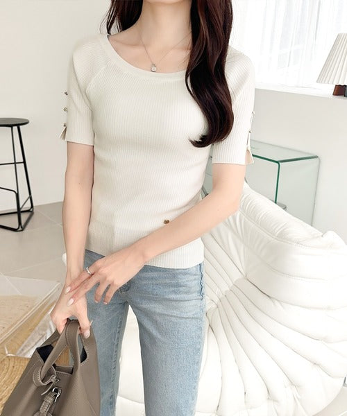 【mily bilet】大人可愛い抜け感!袖開きボタンサマーニット(半袖) mi1029117