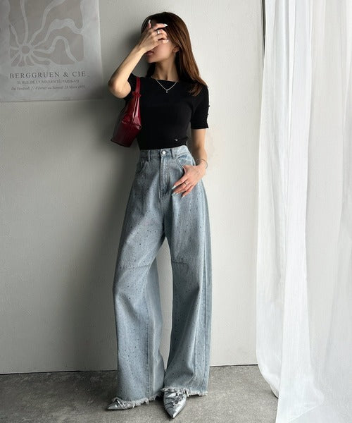 少しきれいめなスタイルを目指すなら、シアースカートやスラックスパンツと合わせてみても◎