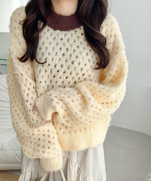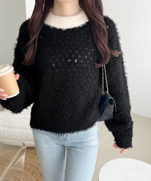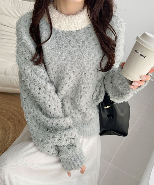 厚手のフェザーヤーンで暖かく、秋冬の季節にぴったりな一枚。