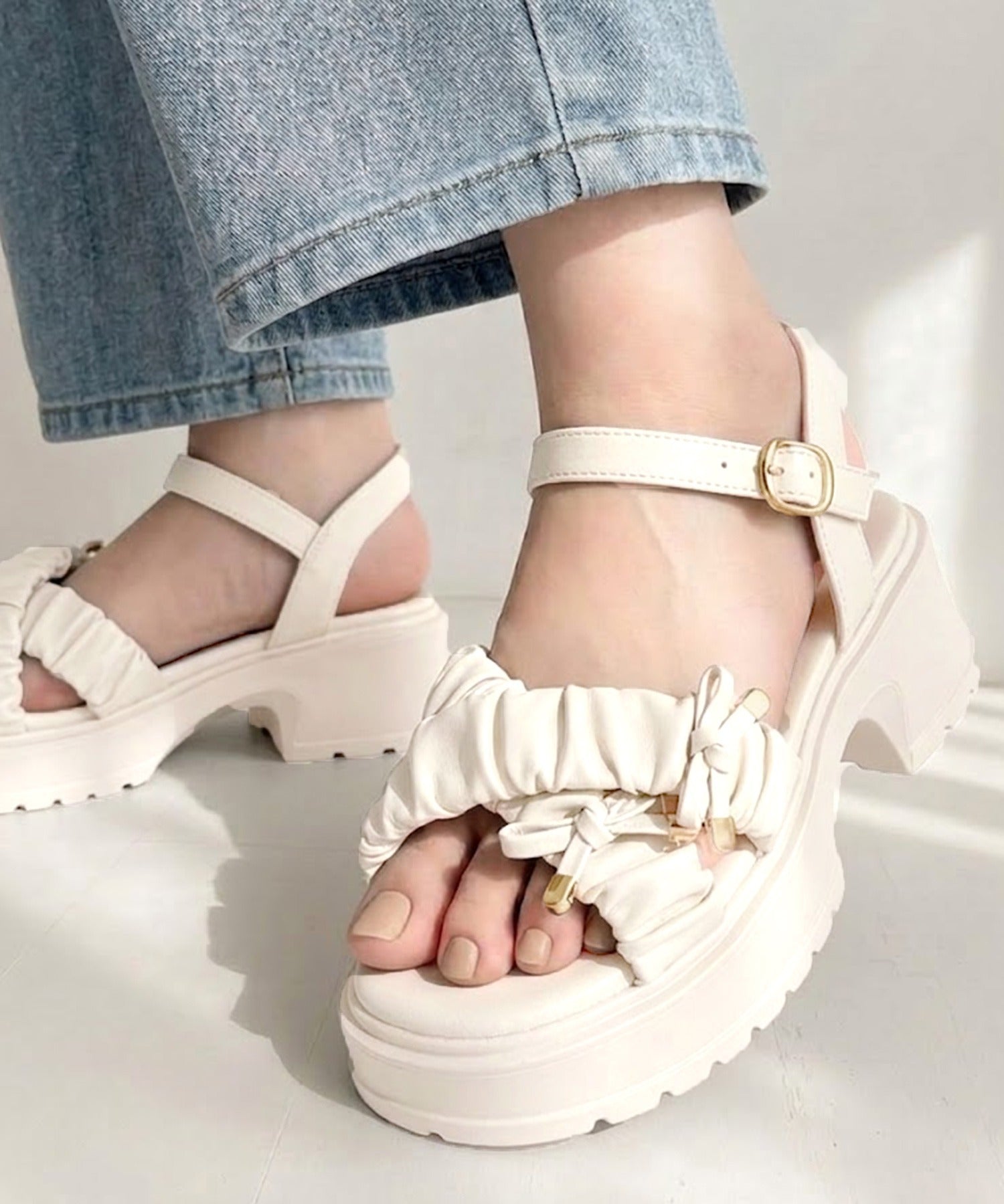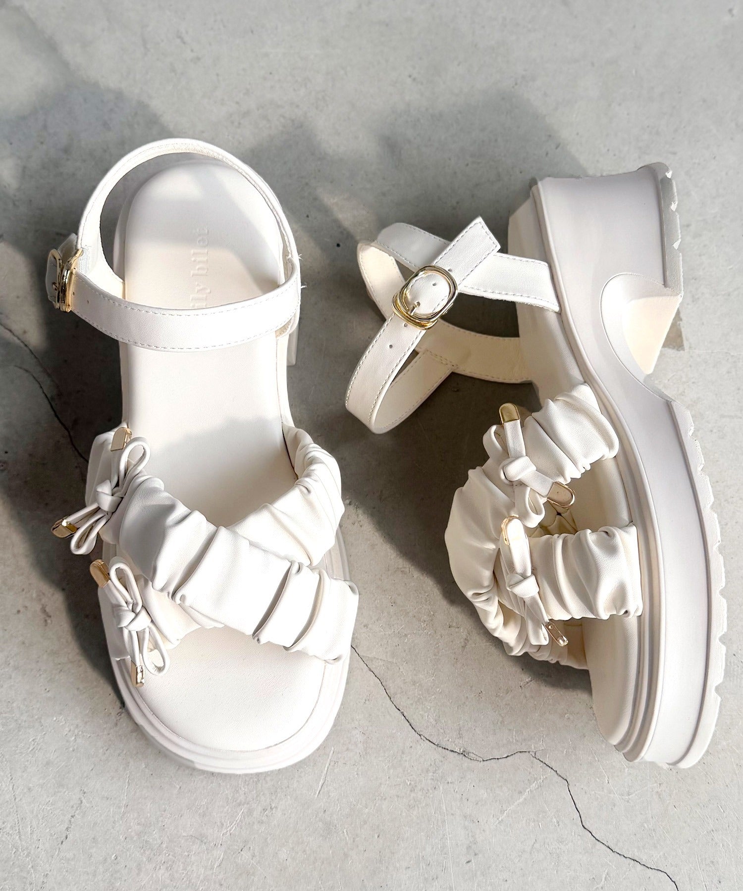 【mily bilet】ふわふわで歩きやすく、5.5㎝ソールで盛れる♪軽量 リボンデザイン クロスベルト 厚底サンダル mi1127002