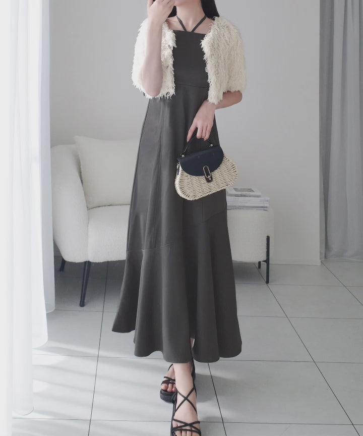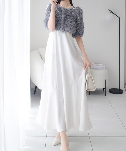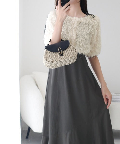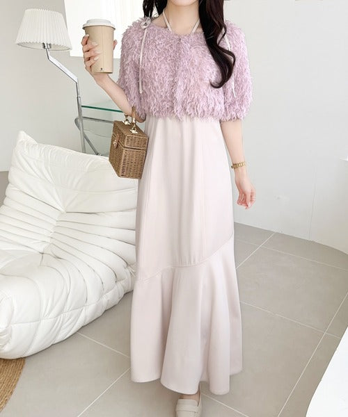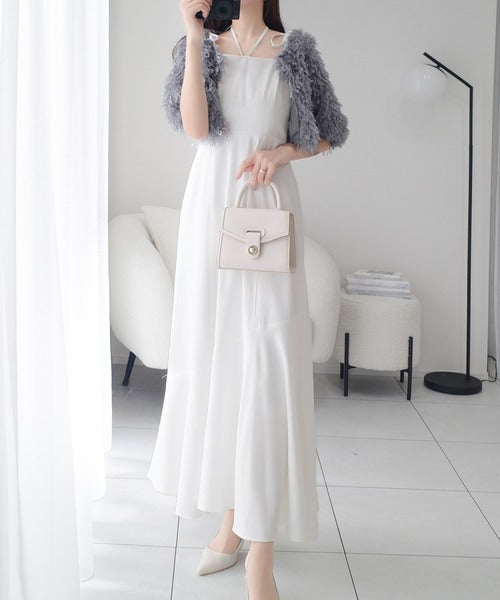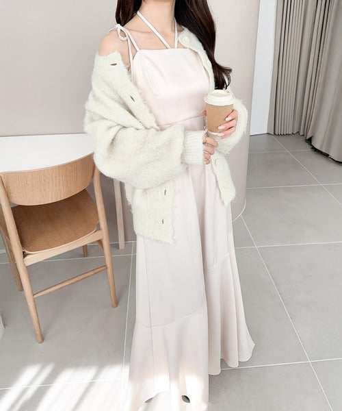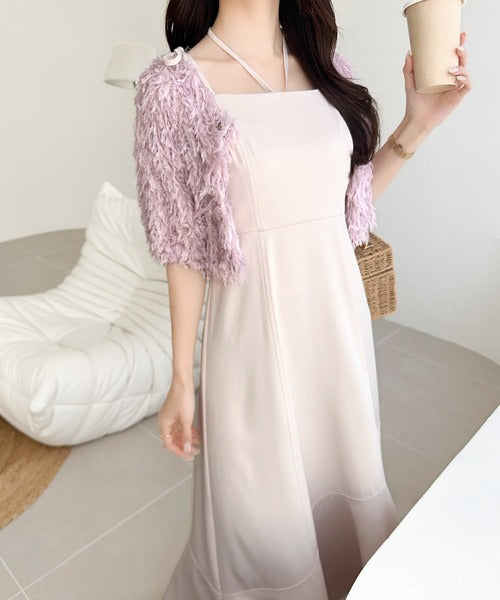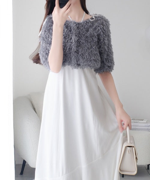 【mily bilet】上品で洗練のマストアイテム。マルチウェイシャギー半袖カーデ付きリボンキャミワンピースアンサンブル mi1139061