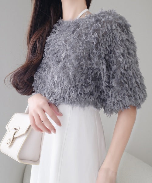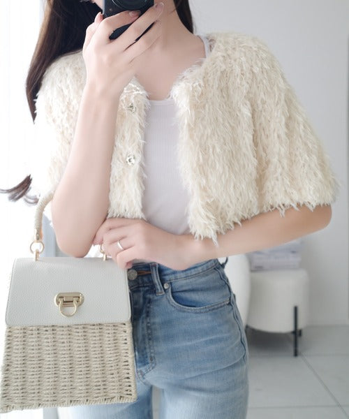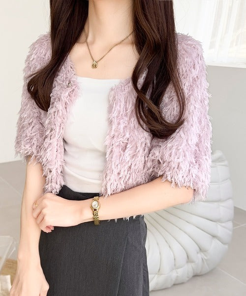 ・毛足のあるボレロ風カーデ(前後2way可能)