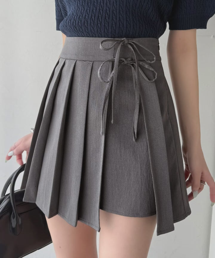 軽やかなプリーツとリボン使いが大人可愛いミニボトム。