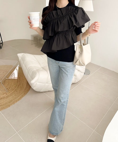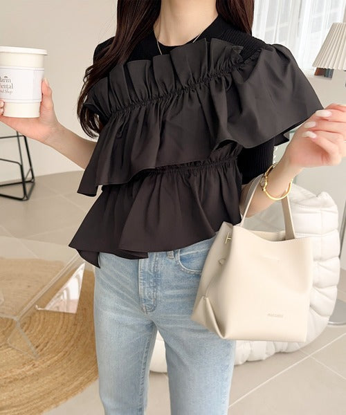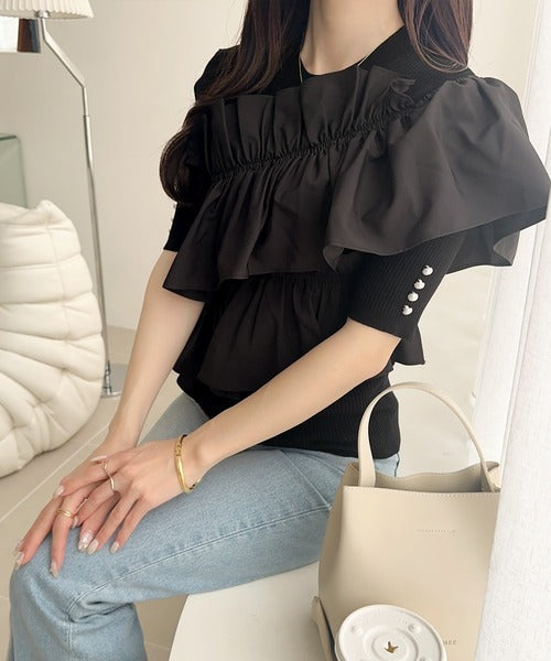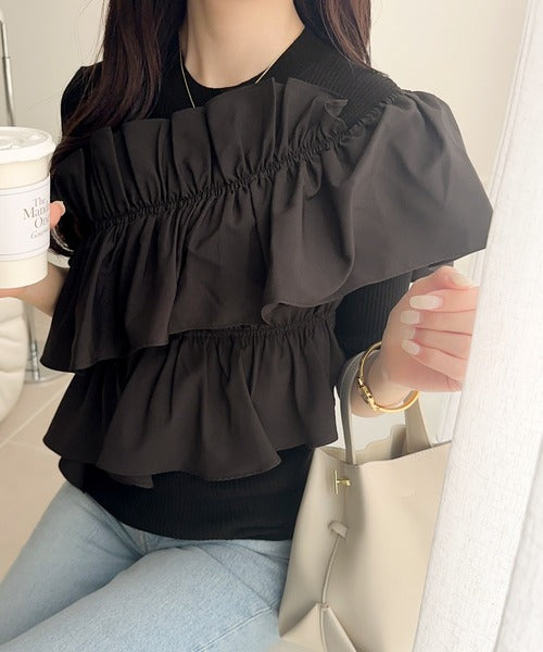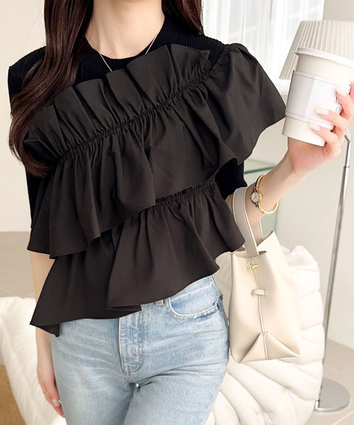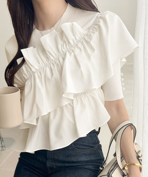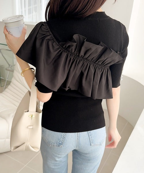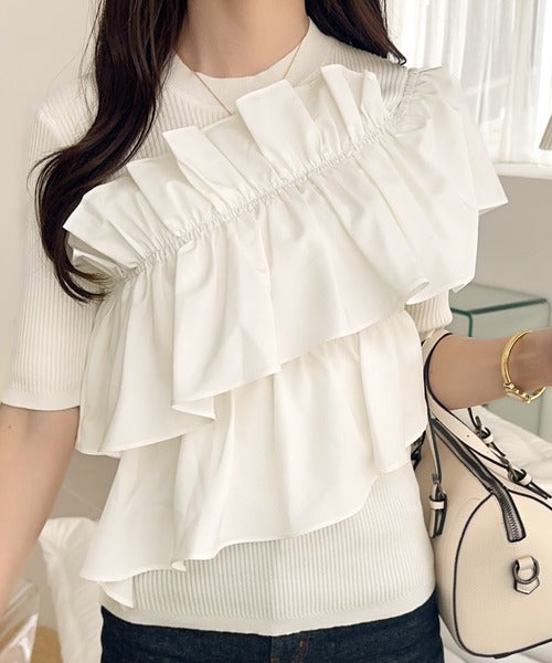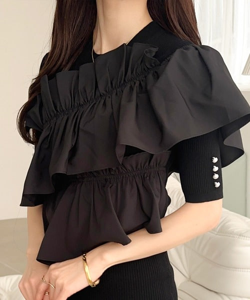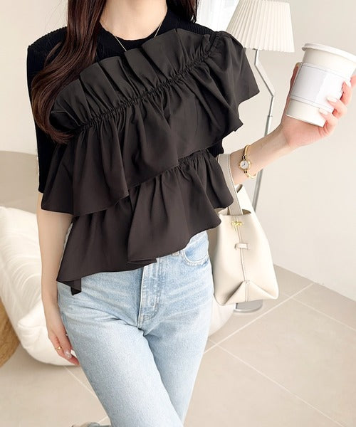 立体感のあるアシンメトリーフリルを前後に大胆にドッキングし、