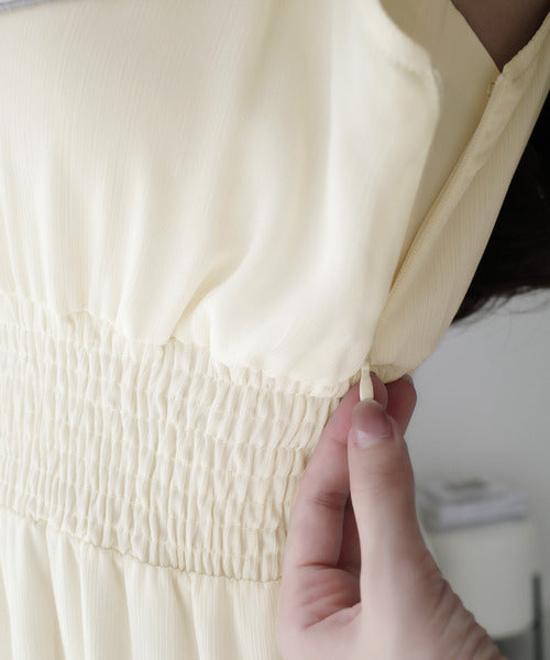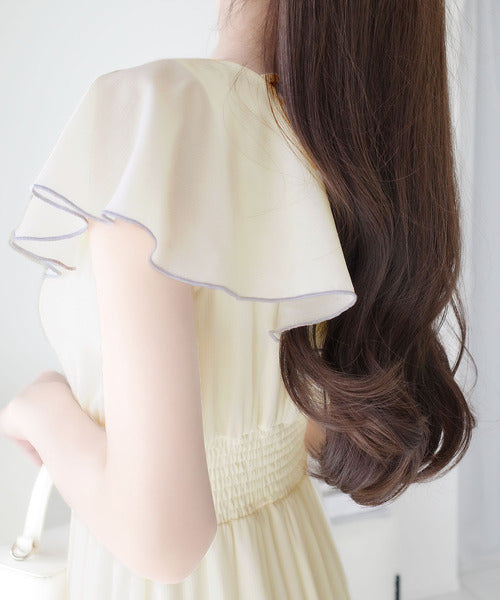 二の腕をカバーできる前後フリルは、女性らしさを引き立て、