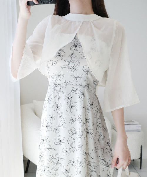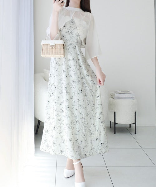 【mily bilet】透け感コーデ でつくる、映えガーリー。前後2WAY花柄シアーボレロセットアップキャミワンピース mi1139082