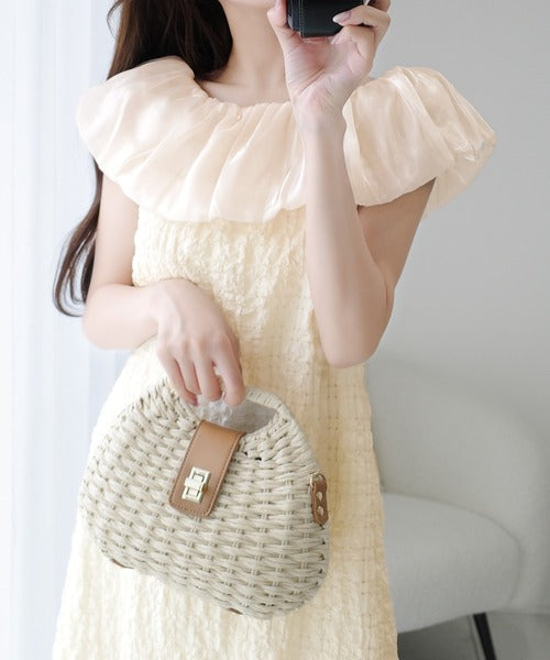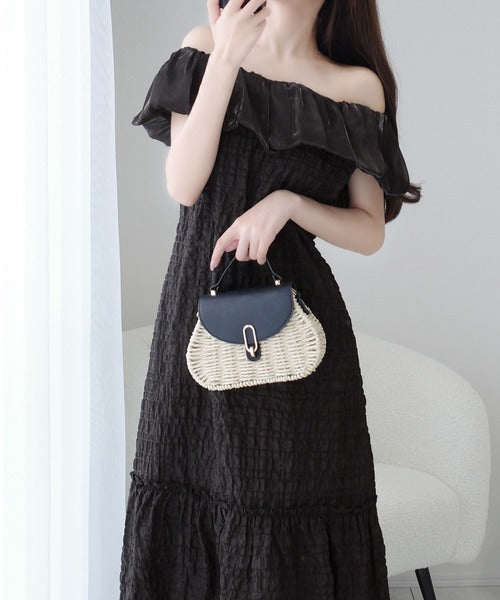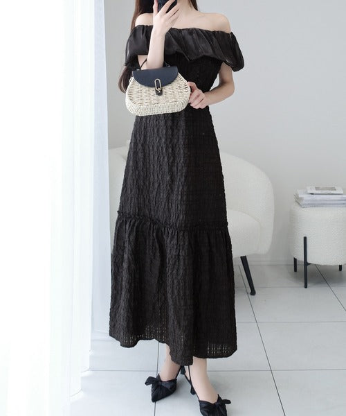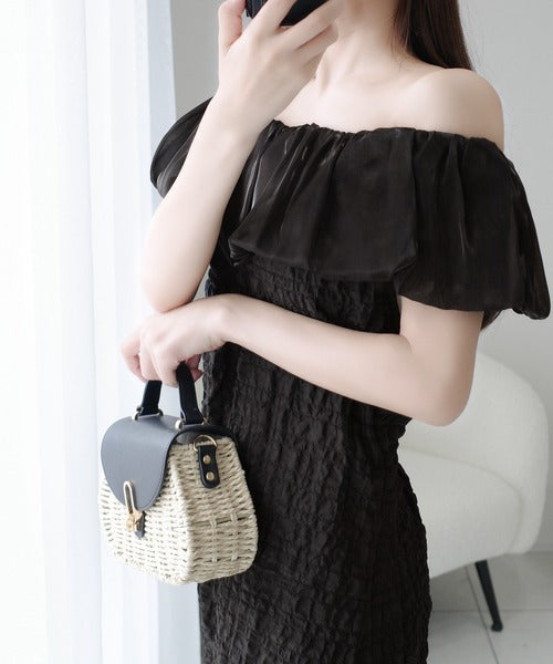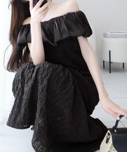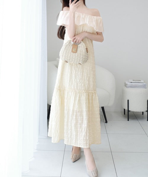 【mily bilet】甘さと気品を一枚に。ビッグオーガンジーケープ付きオフショル2WAYシアーエンボスワンピース mi1139087