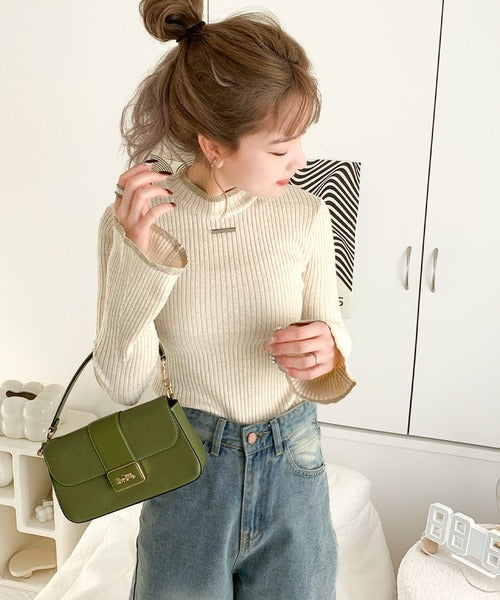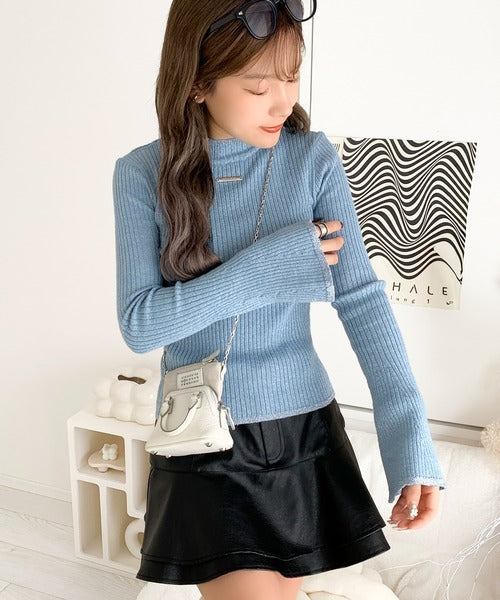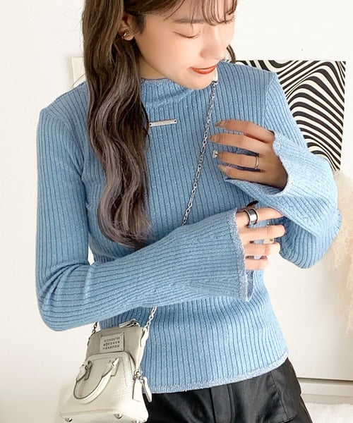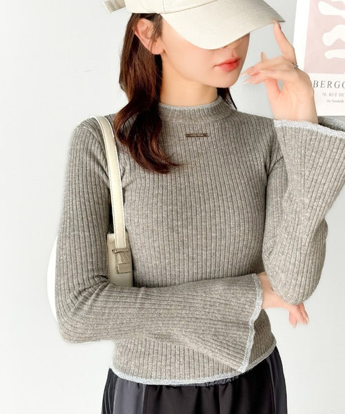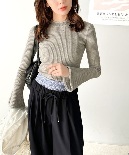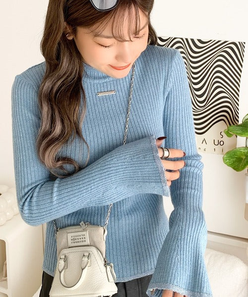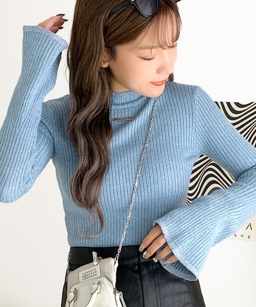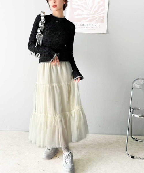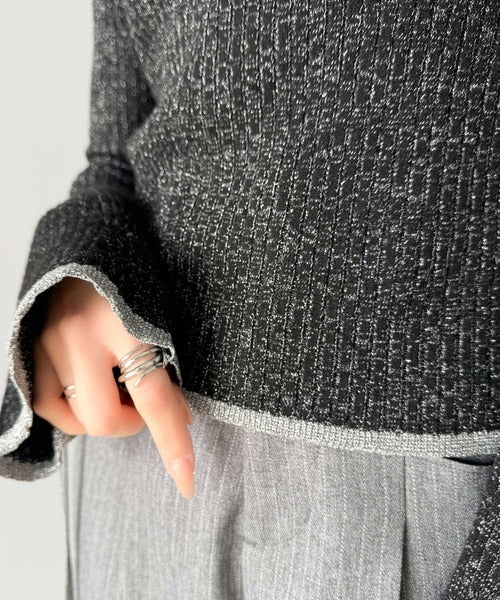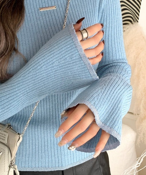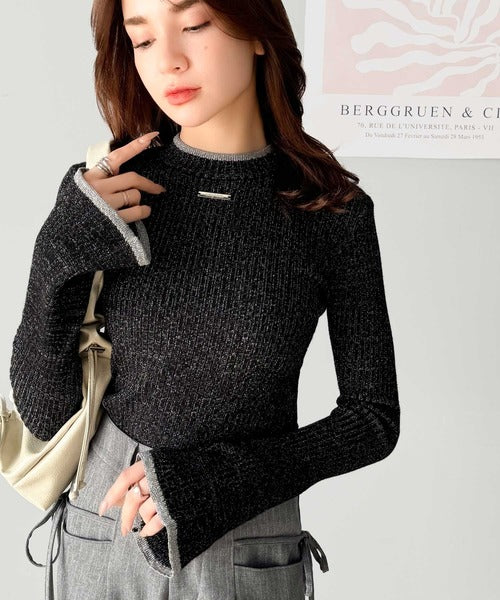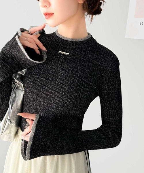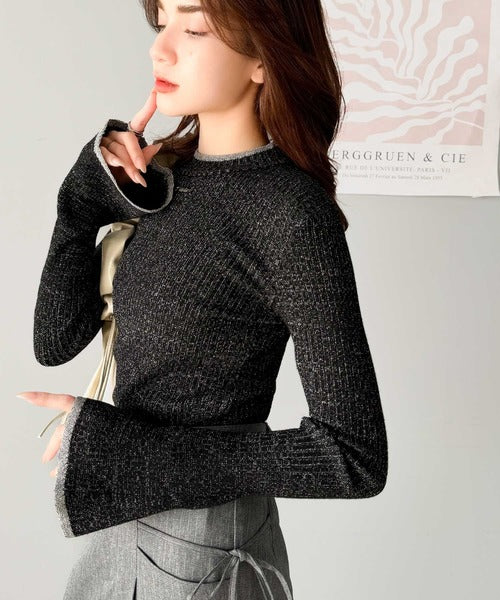 【mily bilet】きらめきと上品さ溢れる。ラメ入りリブプチハイ袖フレアニット(長袖) mi1259007