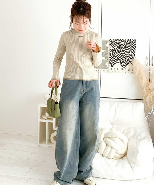 きらきらとしたラメ入り生地が魅力的な「ラメ配色リブプチハイニット」は