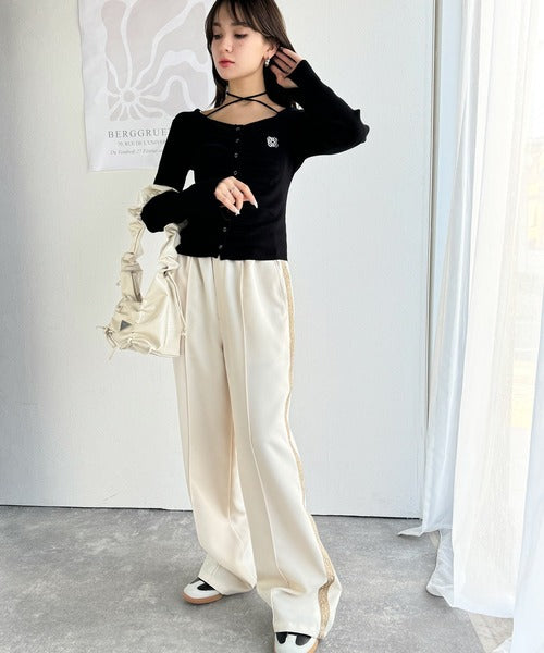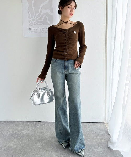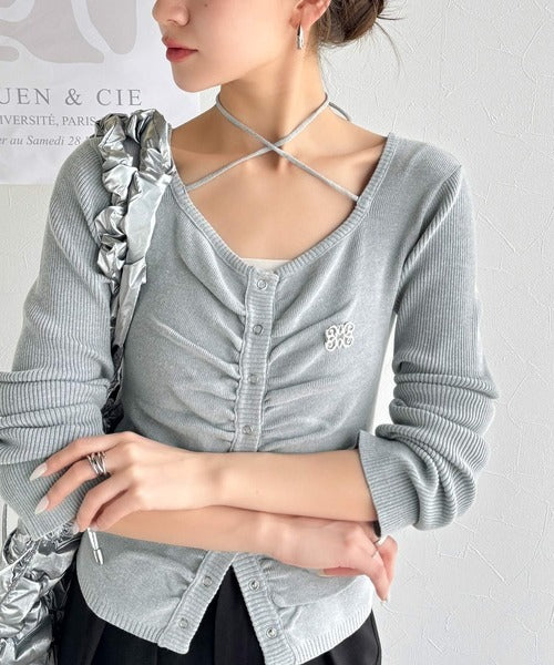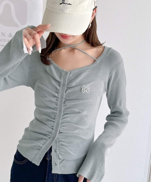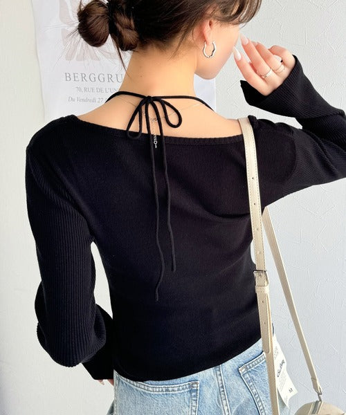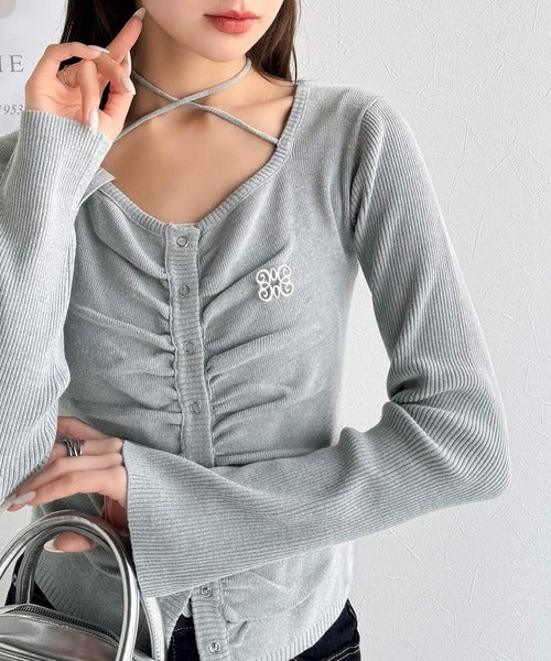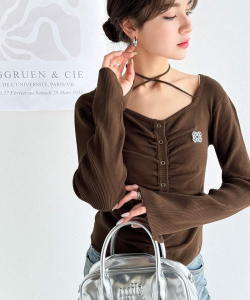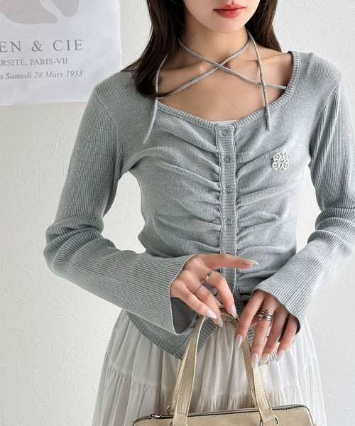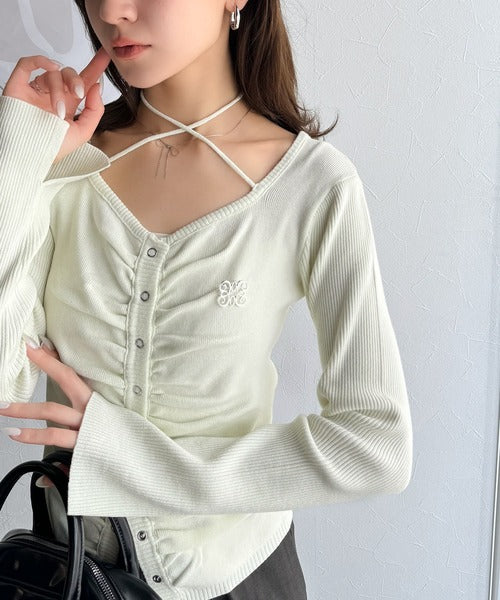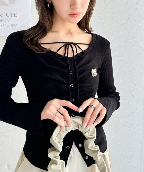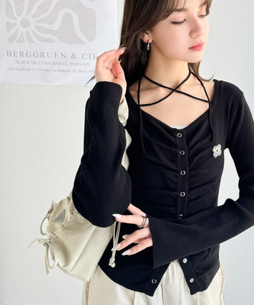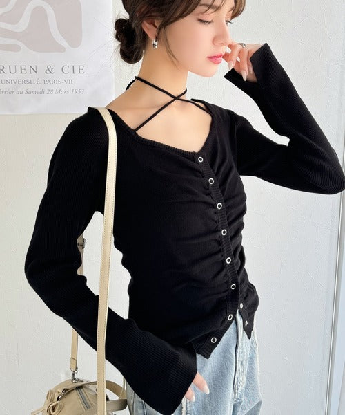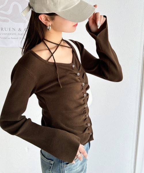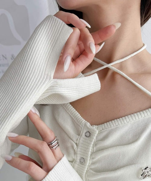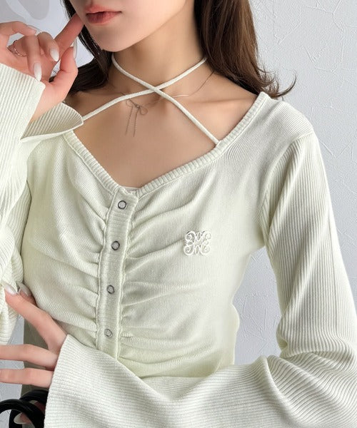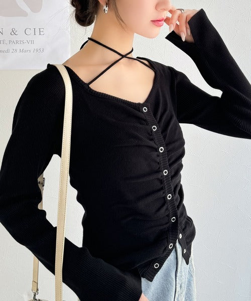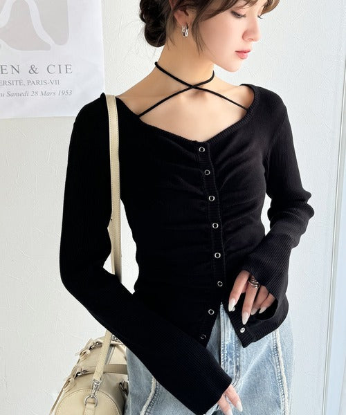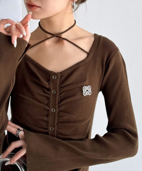 チョーカー紐&ブローチ付き胸シャーリングニット♪