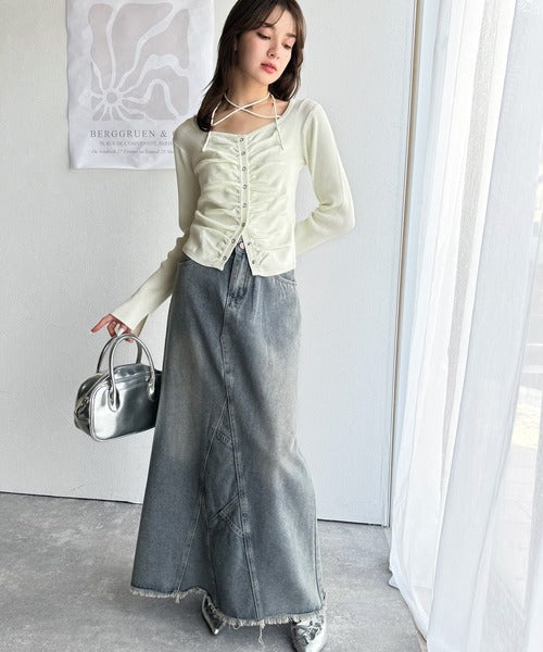デニムやスウェット、ロングスカートなど、様々なボトムスとの相性が抜群。