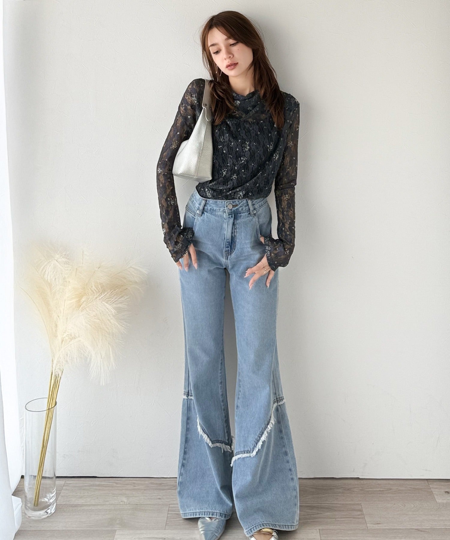 カジュアルコーデを楽しむならカーブデニムやフレアパンツ合わせるのがオススメ!