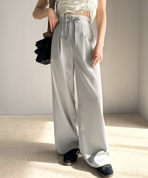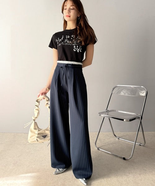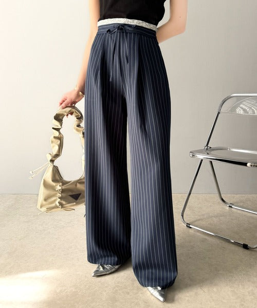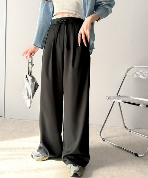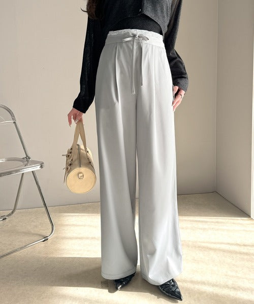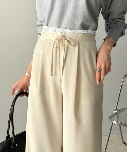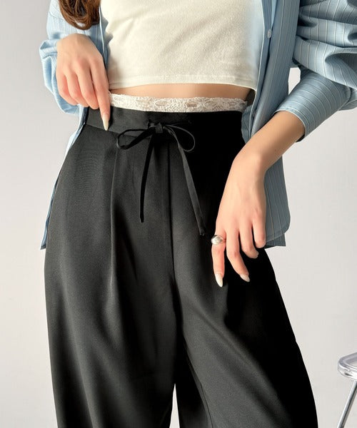 【mily bilet】新感覚デザイン。レース使いダブルウエストワイドスラックスパンツ mi1329021