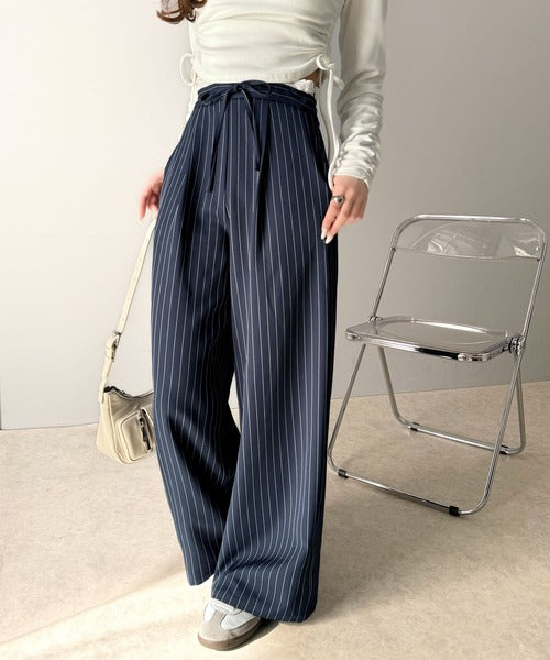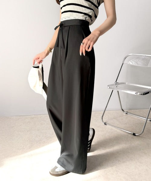 ウエストのリボン紐で締めてくれるため、好みのフィット感で着こなすことができますし、