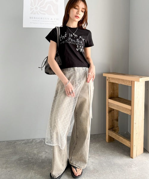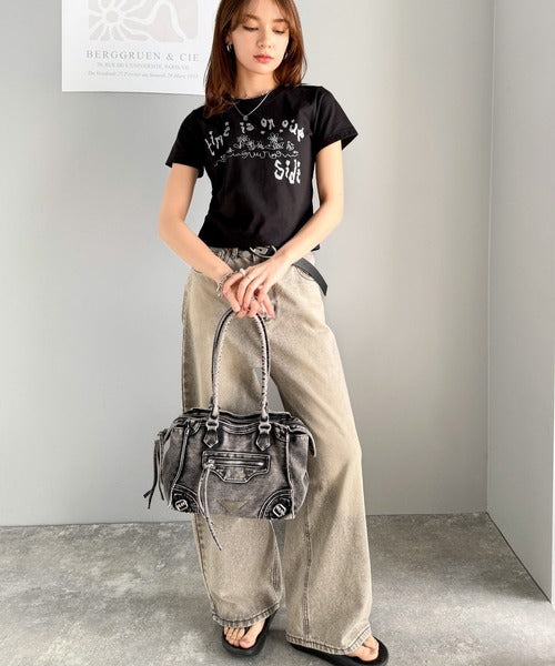 ワイドなボトムスに合わせやすいコンパクトなサイズ感が魅力のTシャツです。