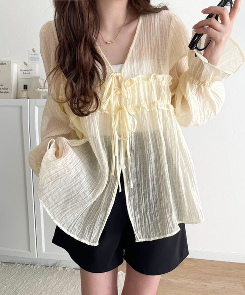 【mily bilet】軽やかガーリー。リボン使いシアー楊柳フリルカーディガン mi1329028