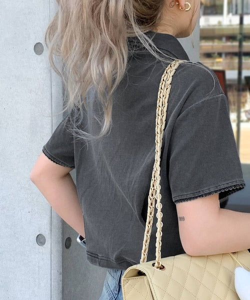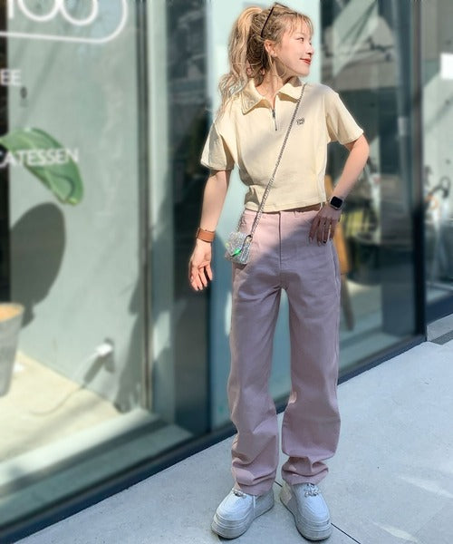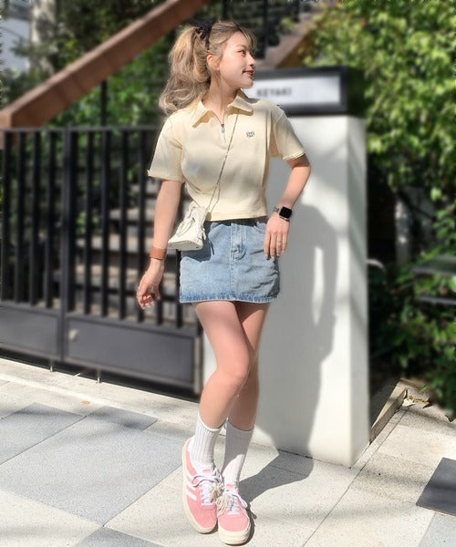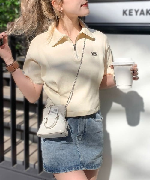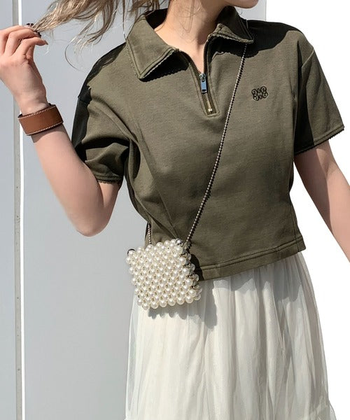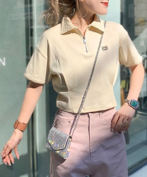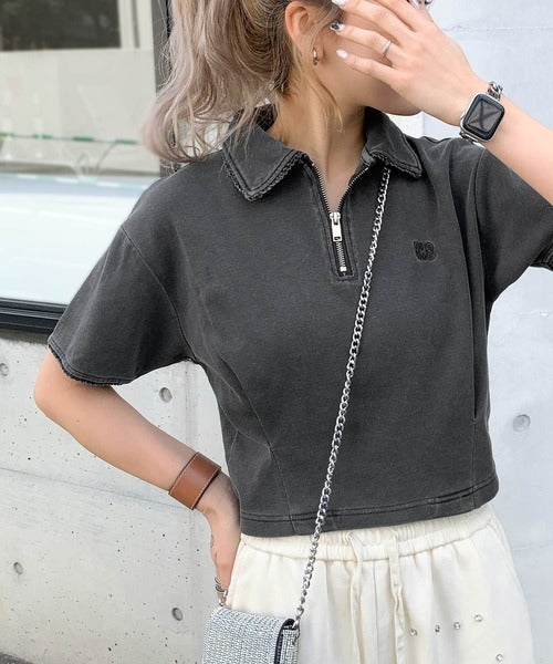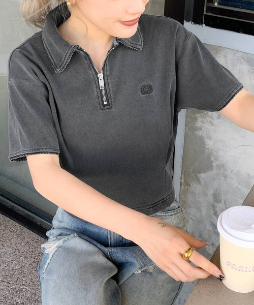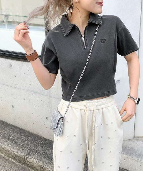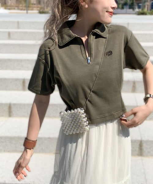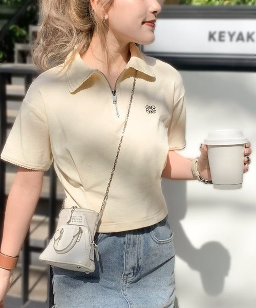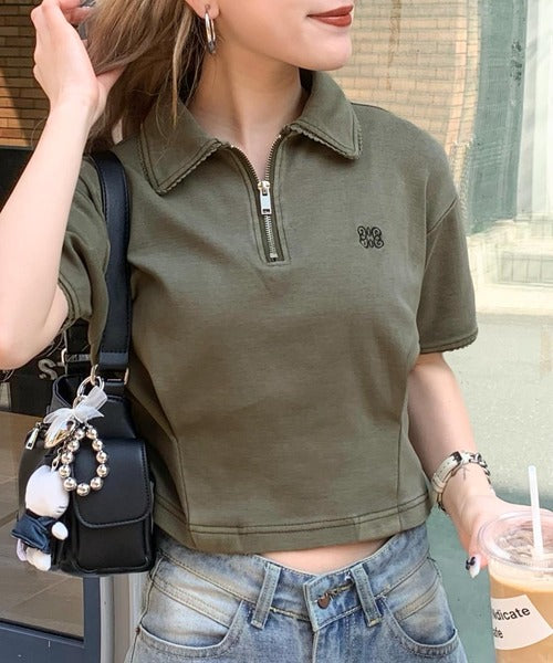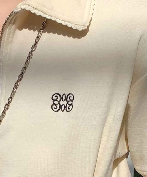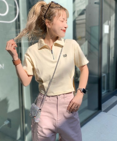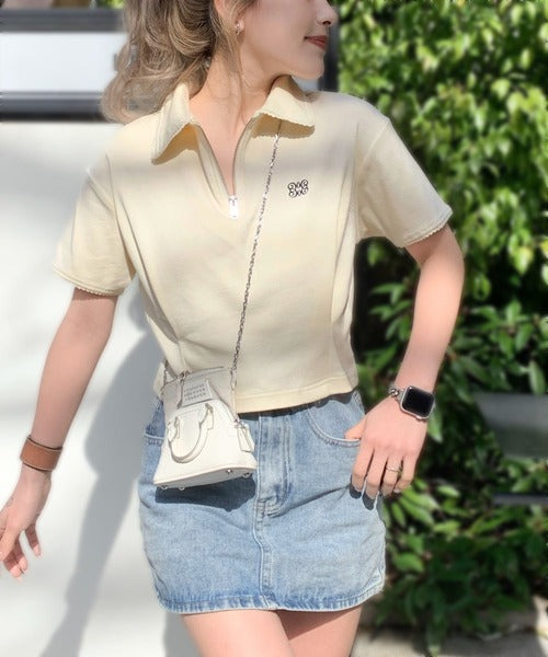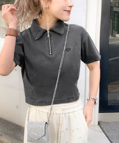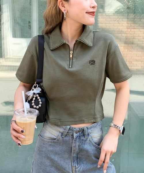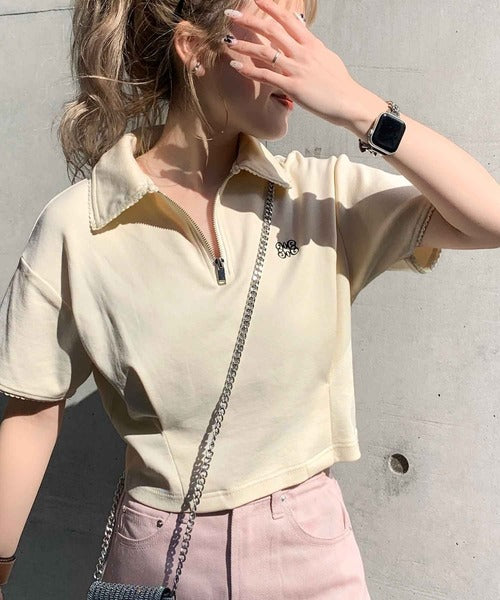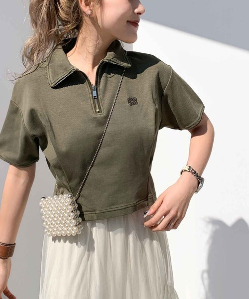 【mily bilet】デイリースタイルをワンランクアップ!ピコレース使い胸刺繍ピグメントZIPポロシャツ mi1329029