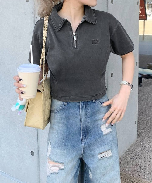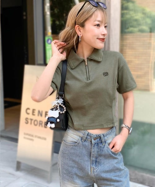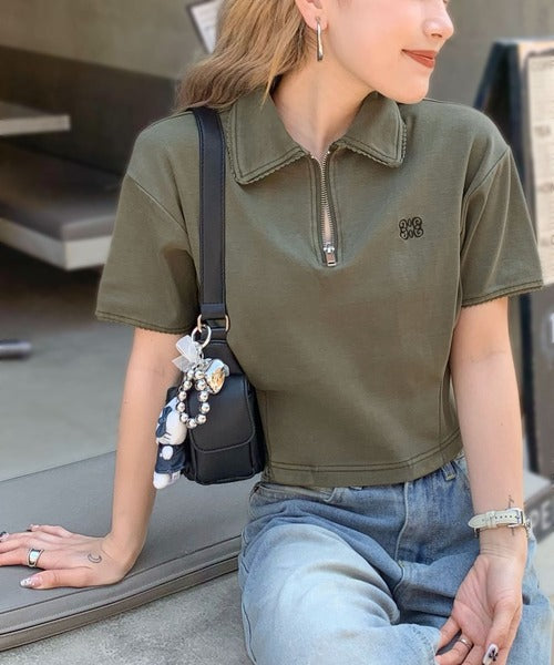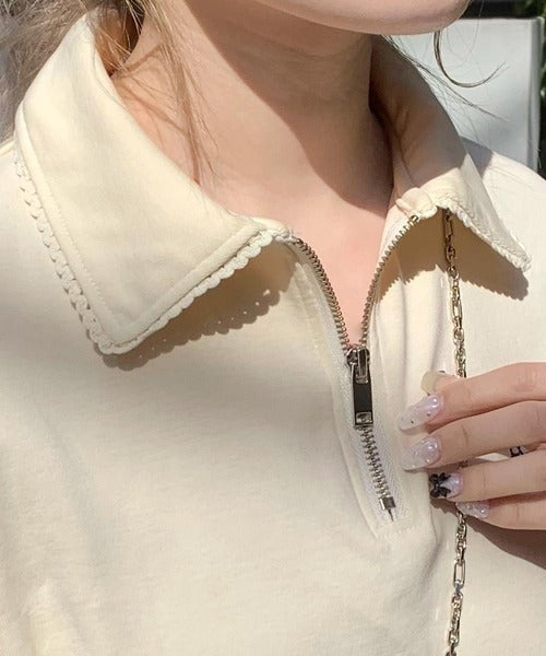 ・ハーフジップディテールとポロ襟のトレンド感あるデザイン