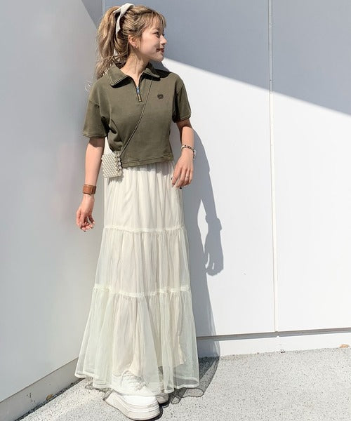 チュールスカートやキャミワンピースを合わせた甘めスタイルまで