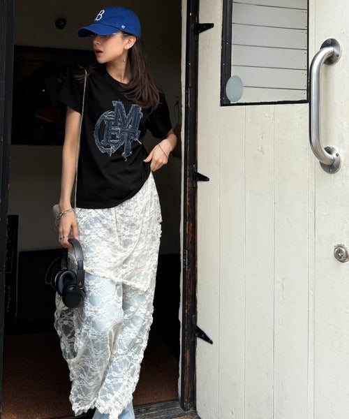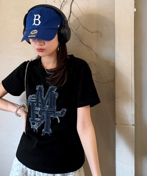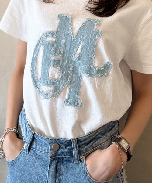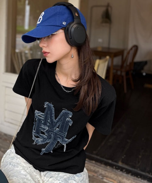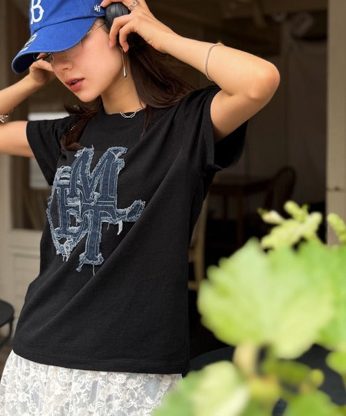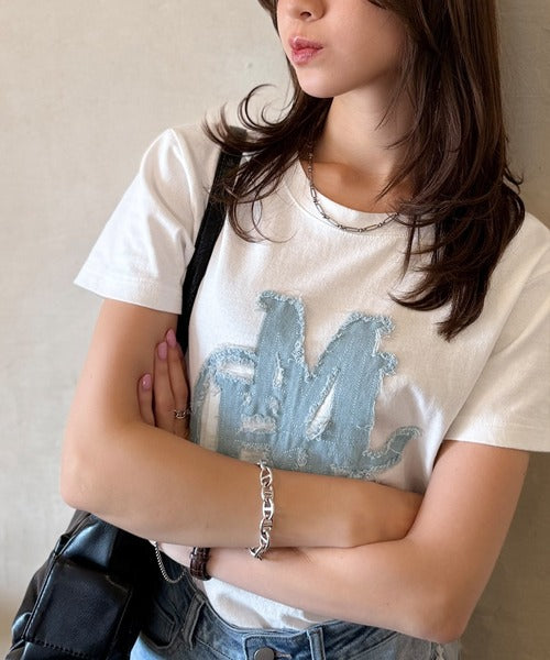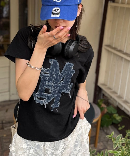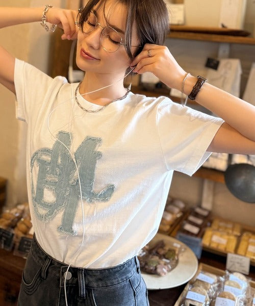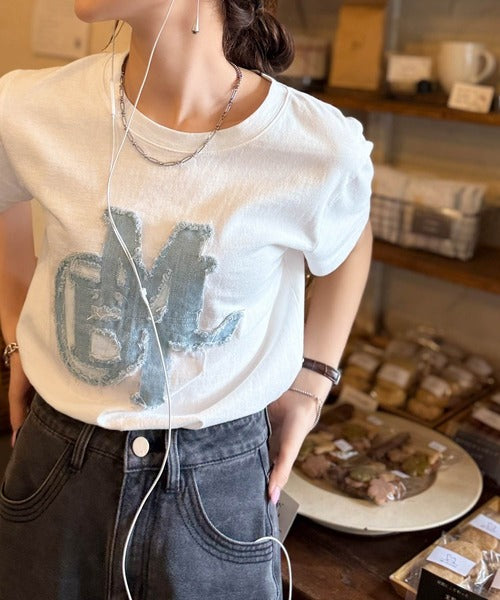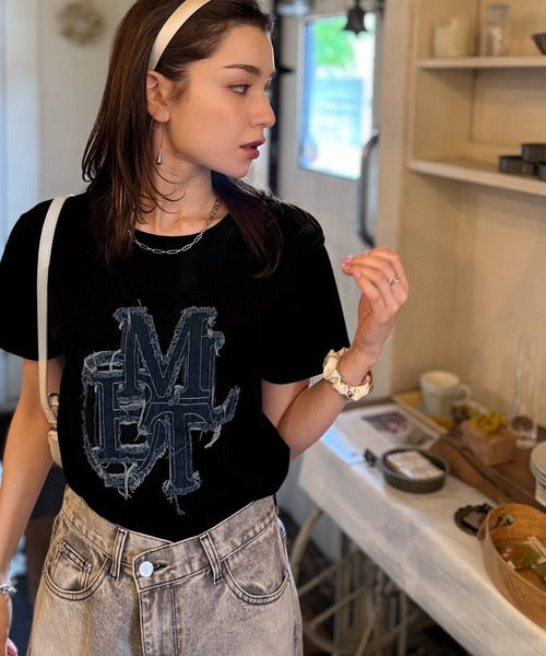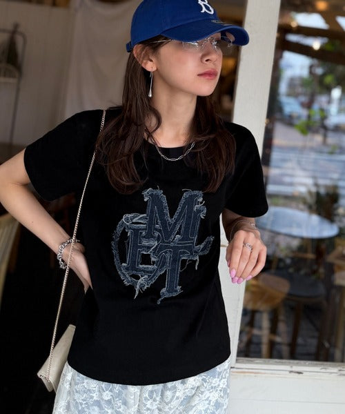【mily bilet】遊び心を忍ばせておしゃれを一新。デニムフリンジワッペン使いTシャツ mi1329037