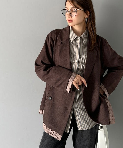 【mily bilet】ゆるっと大人見え。バルーンフリルレイヤードジャケット(セットアップ可能) mi1329053