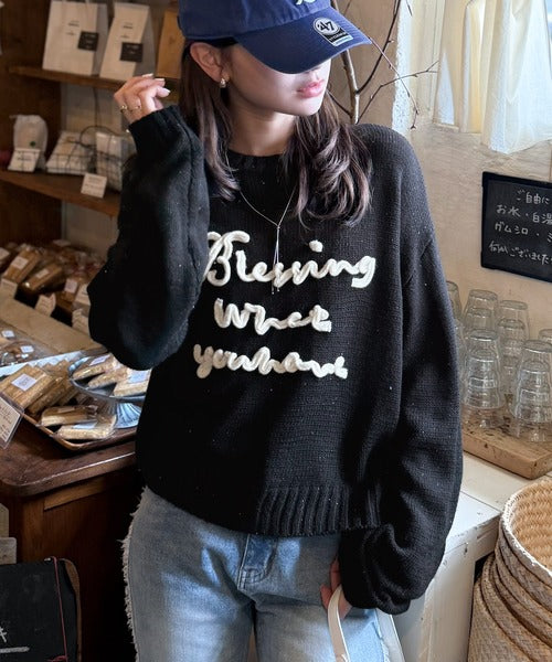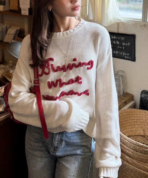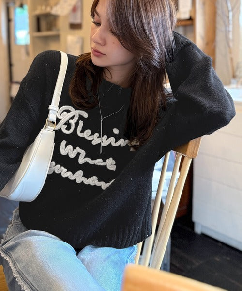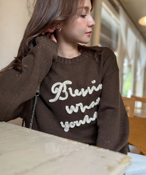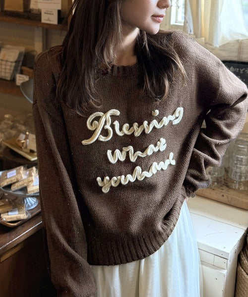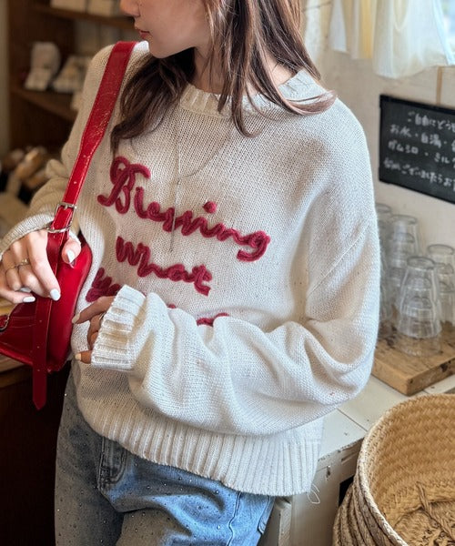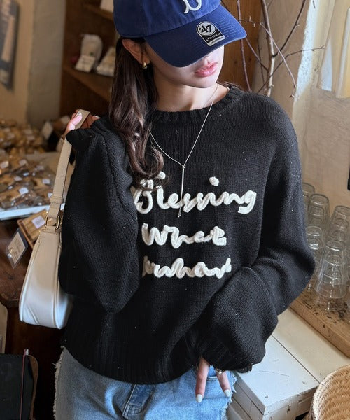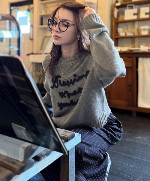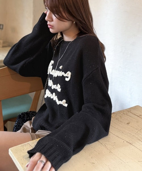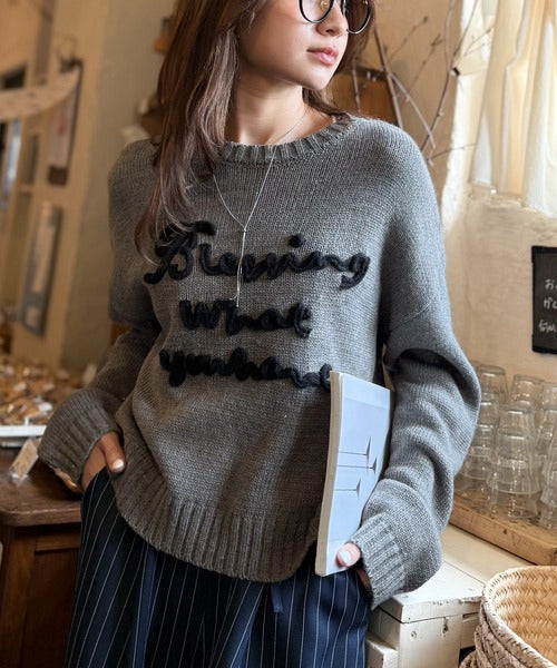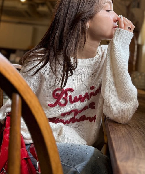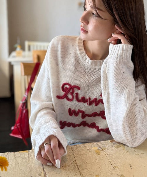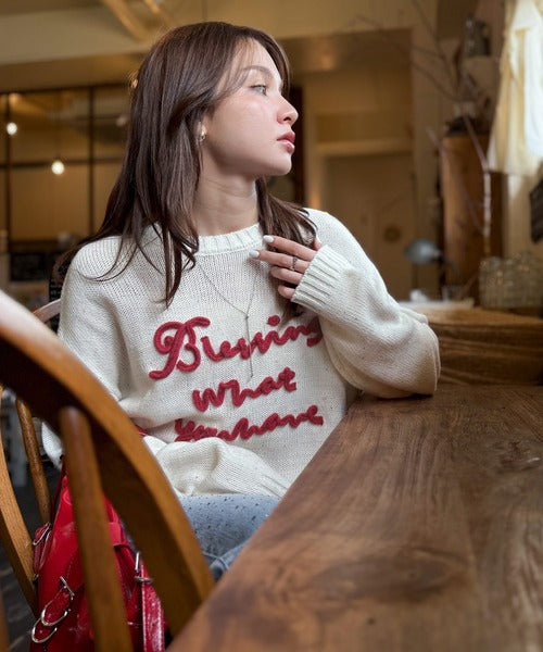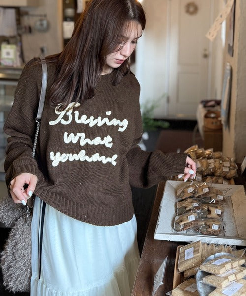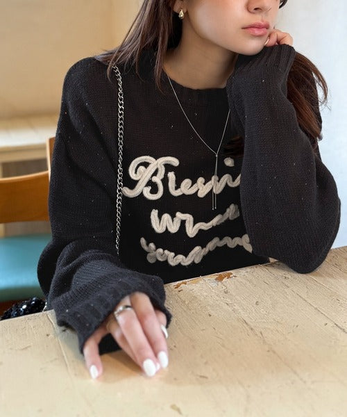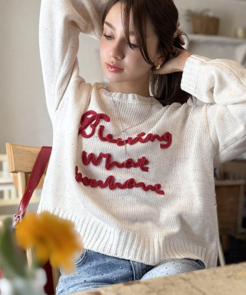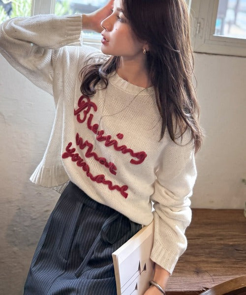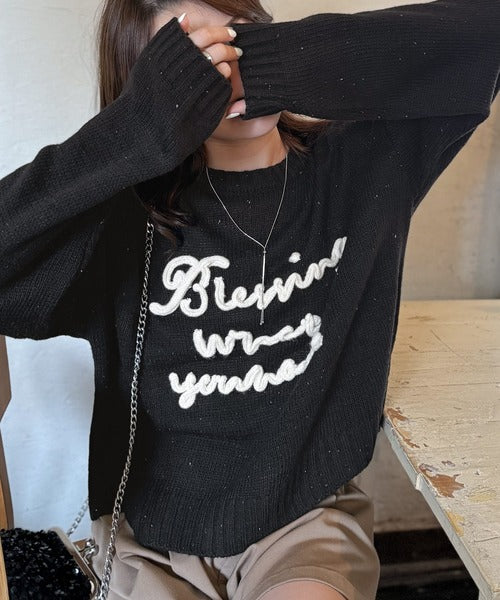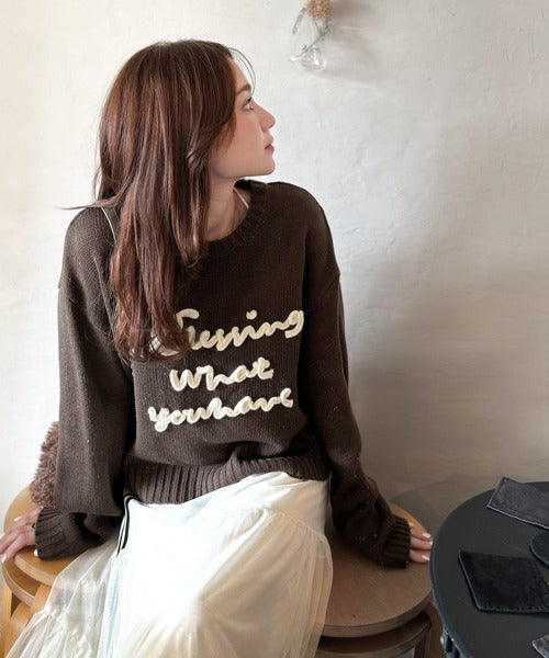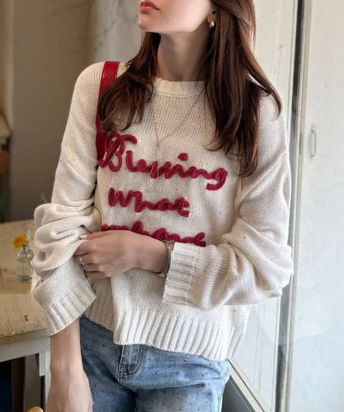 【mily bilet】デイリースタイルを華やかに彩る。コード刺繍ネップニットプルオーバー mi1359018