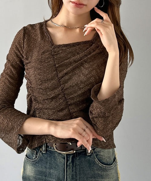 アシメデザインがこなれ感を演出し、1枚でお洒落なコーデが完成します。