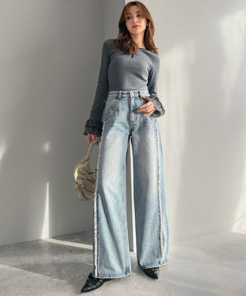 袖口にフリルをあしらい、大人フェミニンな雰囲気をプラス。